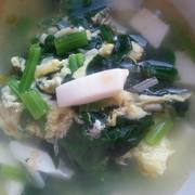菠菜、内酯豆腐、虾皮、鸡蛋、盐、香油、鸡精、葱。