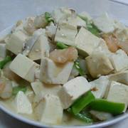 虾仁、豆腐、咸蛋黄、尖椒、葱、盐、糖、鲍鱼汁。