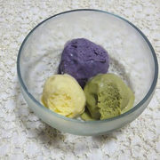 蛋黄、鲜牛奶、淡奶油、糖、香草精、紫薯、抹茶。