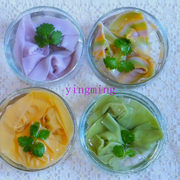 面粉、肉、胡萝卜汁、小白菜汁、紫苋菜汁、清水。