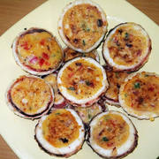 鱿鱼、面粉、鸡蛋、洋葱头、红辣椒、青辣椒、韭菜。