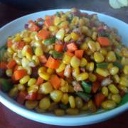 冻玉米粒、胡萝卜、熟虾仁、猪肉、心里美萝卜皮、小葱、盐、花椒粉、酱油。