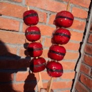 山楂、白糖或冰糖、水、竹签、豆沙。