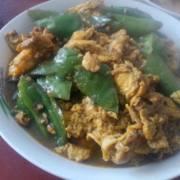 鸡蛋、尖椒、香其酱、花椒粉、葱花。