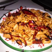 白皮花生、干红辣椒、花椒粒、水、油、花椒粉、辣椒粉、精盐。