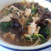 里脊肉、木耳、绿豆芽、苦菊、花椒粒、郫县豆瓣酱、葱姜蒜、淀粉、盐。