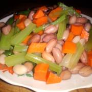 芹菜、胡萝卜、花生米、葱、姜、花椒、八角、盐、味精。