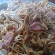 冷面、火腿肠、小红葱头、鸡蛋、蒜蓉辣酱、油。