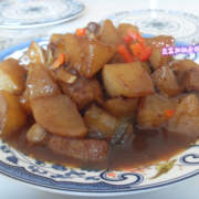 白萝卜、猪肉、葱、姜、李锦记红烧汁、盐、桂皮、大料、淀粉。