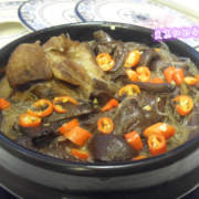 猪骨棒、干榛蘑、小米辣椒、龙口粉丝、葱、姜、大料、桂皮、盐。