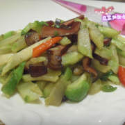 儿菜、腊肉、姜、蒜、盐、鸡精、生抽。