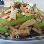 牛肚、芹菜、盐、蒜瓣、鸡精、油泼辣子。