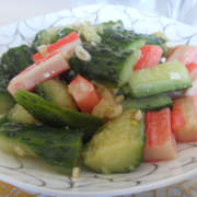 黄瓜、蟹棒、生抽、蒜瓣、盐、鸡精、香油、醋。