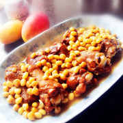 鸡翅根、黄豆、葱、姜、蒜、花椒、桂皮、干辣椒、盐、醋、淀粉、酱油。
