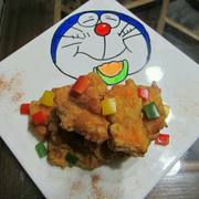 三文鱼、澄面、彩椒、椒盐粉、胡椒粉、料酒、鸡蛋。