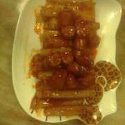 年糕、火腿、韩国辣椒酱、番茄酱。
