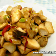 杏鲍菇、腊肉、姜、大蒜、辣椒、九层塔、酱油、米酒、糖。