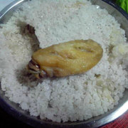 鸡翅、纱纸、盐焗鸡配料、粗盐。