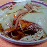粘米粉、火腿、蟹肉棒、胡萝卜、盐、鸡粉、酱油、芝麻油、食用油。