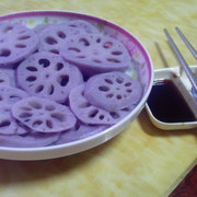 紫甘蓝、藕、清水、李锦记辣虾鲜酱油、盐、芝麻油。