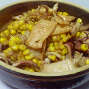 水发鱿鱼、甜玉米、盐、蚝油、芝麻油、食用调和油。