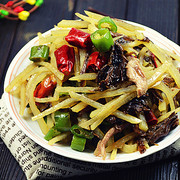 猪展肉、酸笋丝、葱花、盐、鸡粉、黑胡椒、香油。