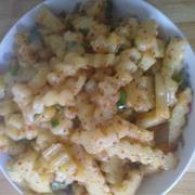 土豆、油、盐、花椒粉、辣椒粉、鸡精、芝麻、葱花。