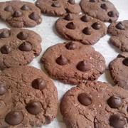 低粉、淀粉、玉米油、可可粉、鸡蛋、巧克力豆、白砂糖。