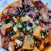 豆腐、花椒、白芝麻、大蒜叶子、蒜泥、豌豆、盐、味精、豆豉酱、老抽。