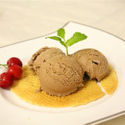 巧克力无水棉花蛋糕、芒果冰激凌、芒果丁。
