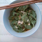 面粉、菠菜、豆干、豆腐、韭菜、鸡蛋、生姜、花椒油、盐、香油、饺子料粉、小茴香粉。