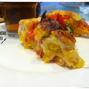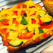 白吐司、青椒、甜椒、黄瓜、披萨切片、芝士片、番茄酱。
