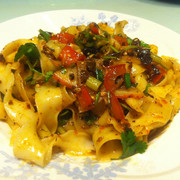 新鲜宽面、红椒、青椒、泡红椒、芹菜、香菜、小葱、白萝卜、豆豉、芽菜、浓缩鸡汁、生抽。