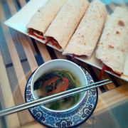 牛肉、洋葱、鸡蛋、生菜、小黄瓜、芝麻酱、盐、料酒、植物油。