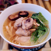 鸡全腿、香菇、干挂面、姜、青菜、料酒、盐、胡椒粉。