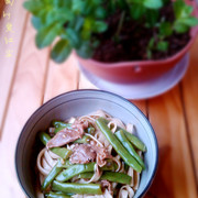 四季豆、干挂面、猪瘦肉、姜、蒜、生抽、老抽、白糖、盐。