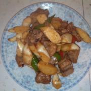 排骨、茭白、青椒、红椒、蒜、姜、盐、生抽。