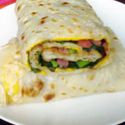 面粉、火腿丁、生菜、香菜、甜面酱、鸡蛋、水。