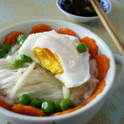 细挂面、胡萝卜、豌豆、鸡蛋、盐。