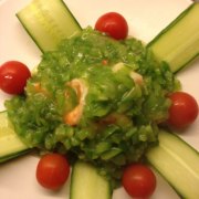 去头老虎虾、青椒、小西红柿、鸡蛋、黄瓜、香葱、盐、味精、鸡汤、花椒油、美极酱油、生粉、食用油。