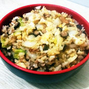 白米饭、香菇、口菇、鸡蛋、白菜、大蒜、鲜辣粉、盐、鸡精、酱油。