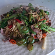 牛肉、芹菜、泡椒、姜、蒜、干辣椒、啤酒、盐、鸡精、酱油。