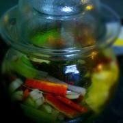 大白萝卜、西芹、胡萝卜、包菜、红皮萝卜、白醋、白糖、干辣椒、香叶、腌制盐、味精、水。