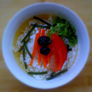 米饭、绿茶、海带丝、胡萝卜丝、生菜丝、西红柿、盐、胡椒粉。