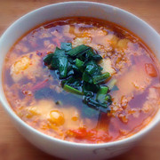 玉米面、面粉、西红柿、韭菜、葱、姜、蒜末、蒜泥、油泼辣子、尖椒、白菜丁。