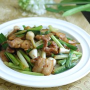 蒜苗、五花肉、蒜、葱、姜、盐、白糖、鸡粉、蚝油、料酒、生抽。