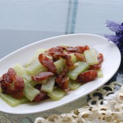 莴笋、腊肉、腊肠、姜、蒜、盐、糖、鸡粉、生粉、香麻油。