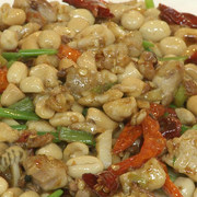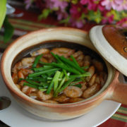 榄菜、豆角、蚬肉、姜、蒜、盐、鸡粉、胡椒粉、蚝油、香麻油。