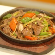 牛肉、姜、蒜、青椒、红椒、蒜苗、洋葱、芹菜、葱、生抽、蚝油、鸡粉、黑椒酱、黄油、生粉、白糖、胡椒粉、松肉粉。