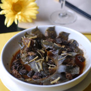 牛肉、香菇、香菜、姜、鸡蛋、盐、胡椒粉、生粉、鸡粉、香麻油。